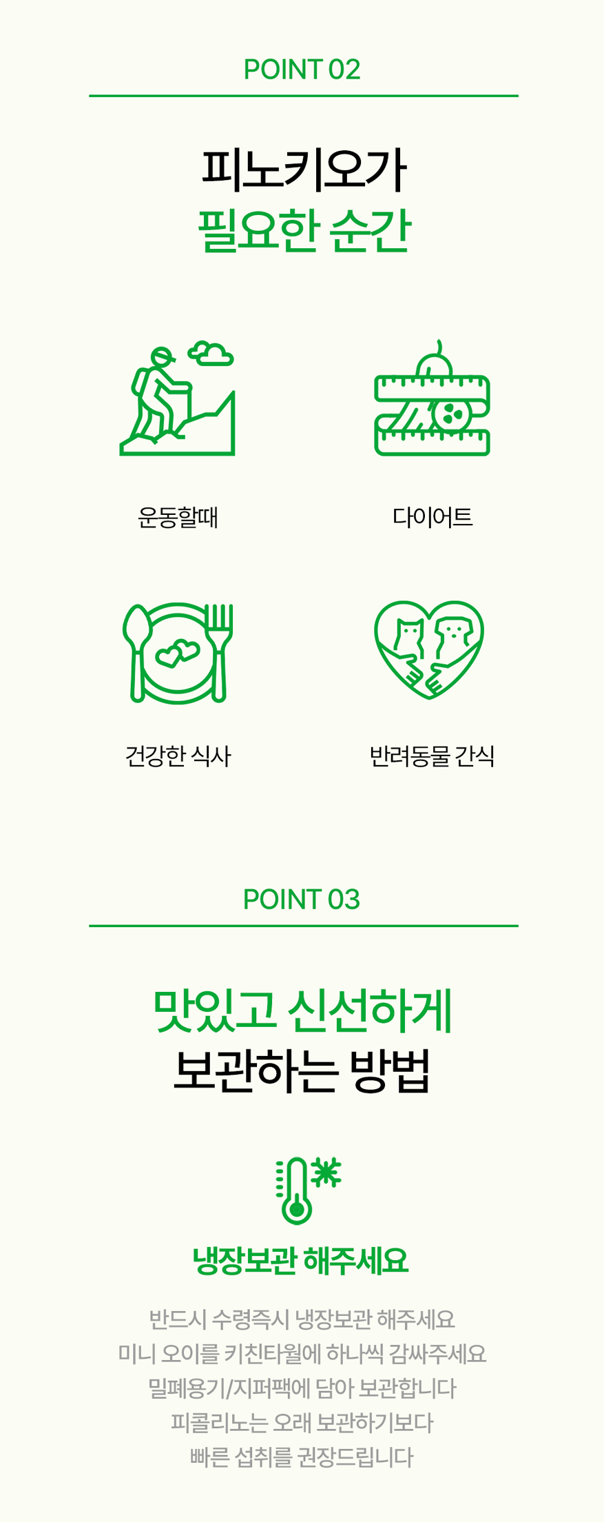 - 신선식품 특성 상 단순변심, 상품크기, 중량, 맛이나 식감에 의한 고객님의 주관적인 판단으로 인한 교환 및 반품은 불가합니다.